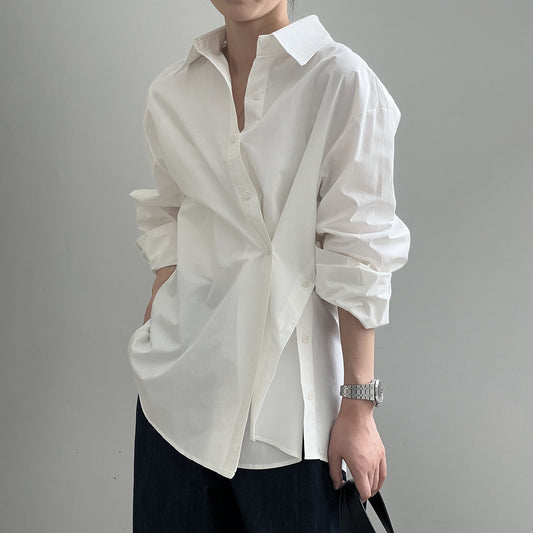 【トップス】秋新作 韓国風 ミニマル 長袖 シャツ|斜めボタン×シンプル美シルエット|【SNシリーズ】