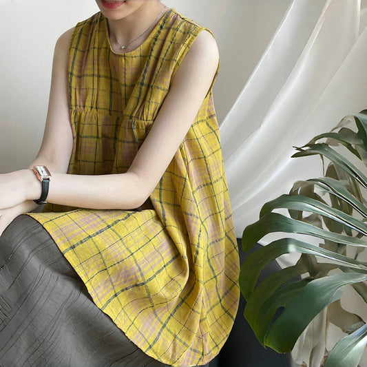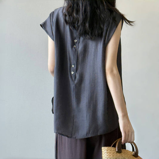 【トップス】夏 バックボタンデザイン ラウンドネック プルオーバー ノースリーブテンセルシャツ【JZシリーズ】