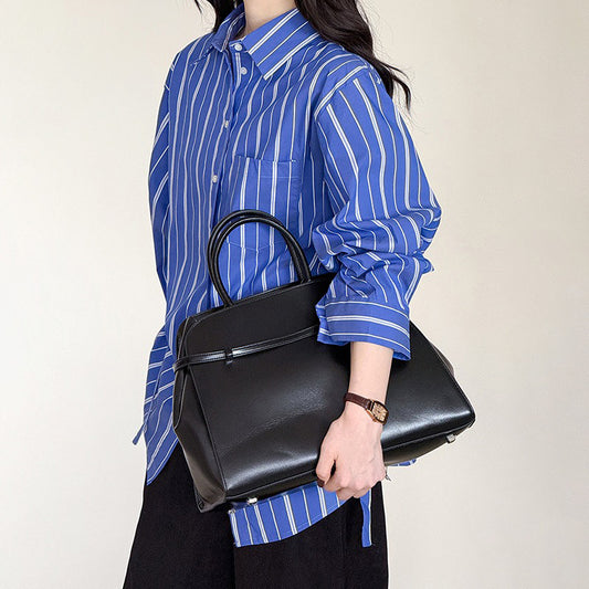 【トップス】秋先取り 韓国風ナチュラル ブルーストライプ ゆったりシャツ【JZシリーズ】