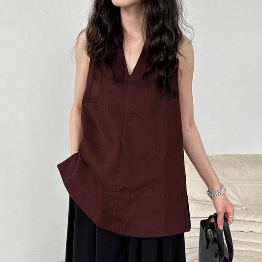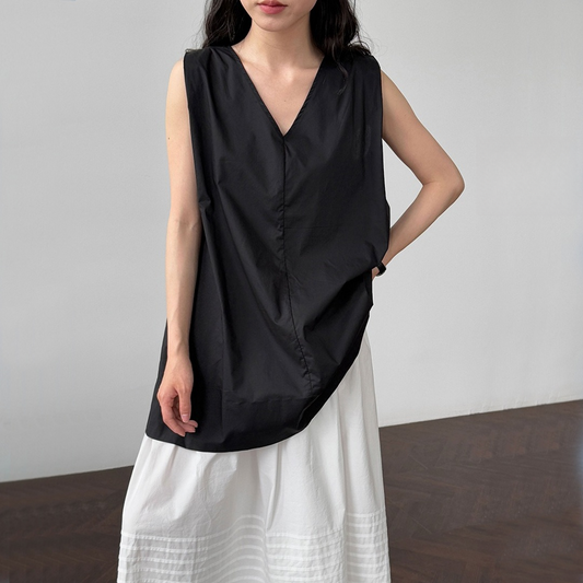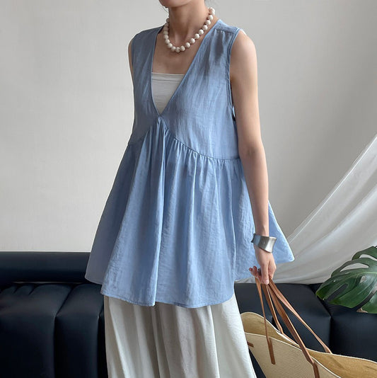 【トップス】韓国風 シンプル Vネック ノースリーブ ベビードールブラウス【JZシリーズ】