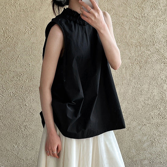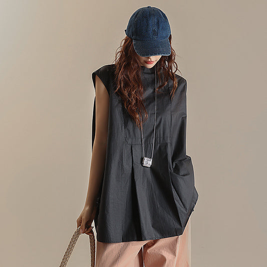 【トップス】夏 前後着用可能 ノースリーブ スタンドネック シャツ
