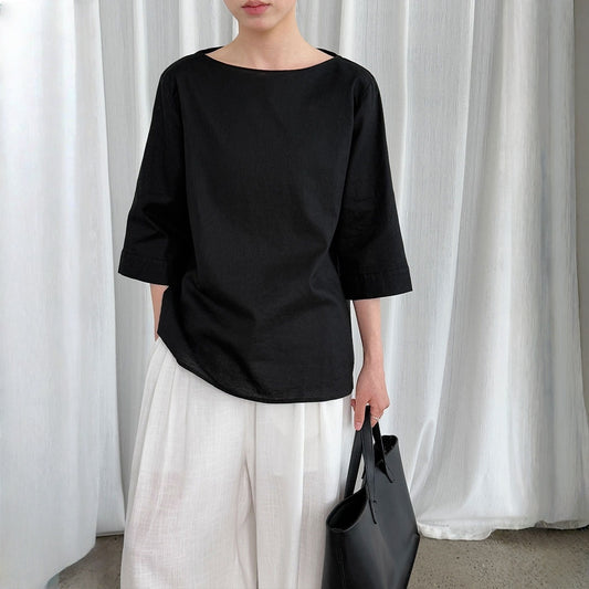 【トップス】夏 オフショルダー 七分袖 綿麻 シャツ 【SNシリーズ】