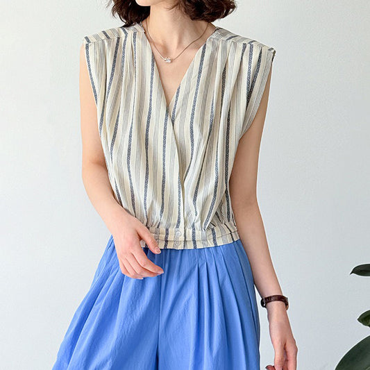 【トップス】デザイン性のある ハイネック 夏の涼感 リラックス Vネック ノースリーブブラウス【JZシリーズ】
