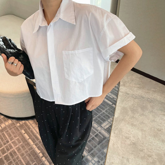 【トップス】ロールアップスリーブ半袖シャツ 夏 ゆったり ファッション カジュアル スリム見え ショート丈 フレンチシャツ【JZシリーズ】