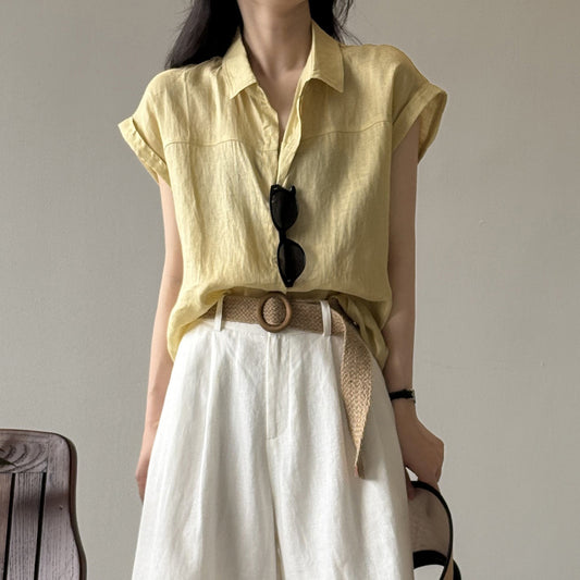 4color【トップス】リネン100% 韓国風 夏新作 無地 ゆったり 細見え シャツ【JZシリーズ】