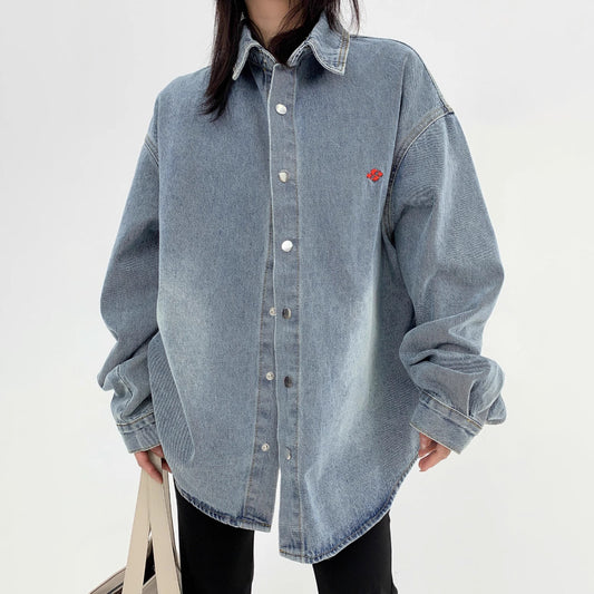 【トップス】春秋冬 アメリカン 刺繍 ルーズ ヴィンテージ カップル用 デニムシャツ【FCシリーズ】