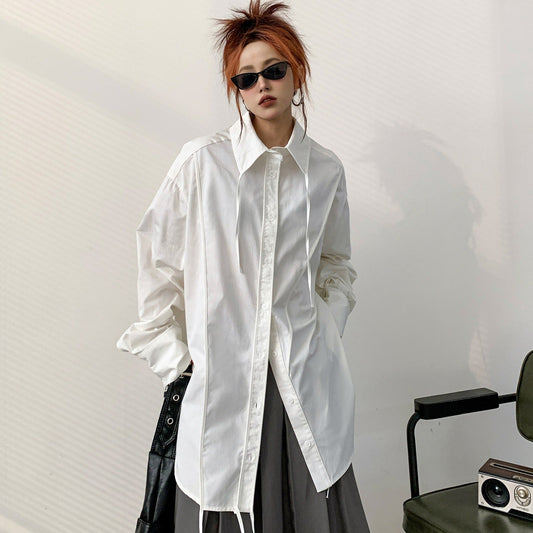 【トップス】春秋 ダーク系 ルーズ ドローストリング マルチシーン トレンディブラウス【AHシリーズ】