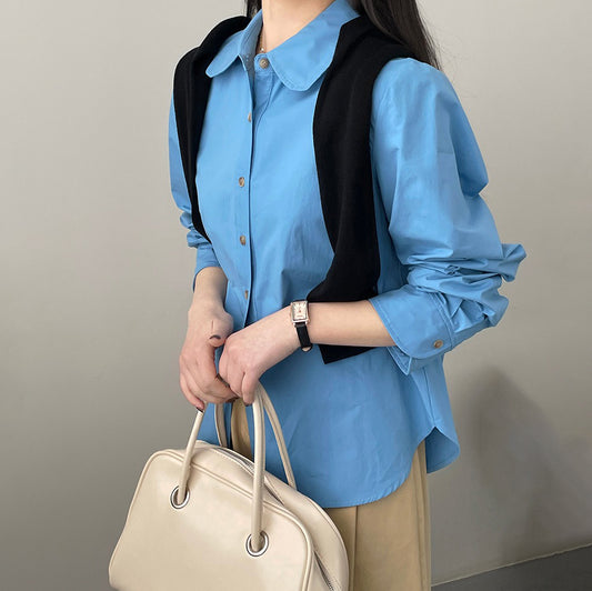 【トップス】無地ドールカラー 日系 ベーシック 春秋 シングルボタン ウォッシュドコットンシャツ【JZシリーズ】