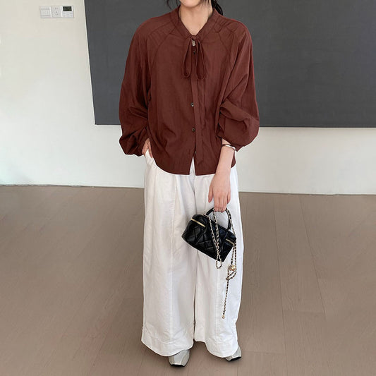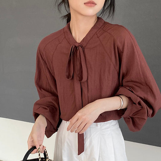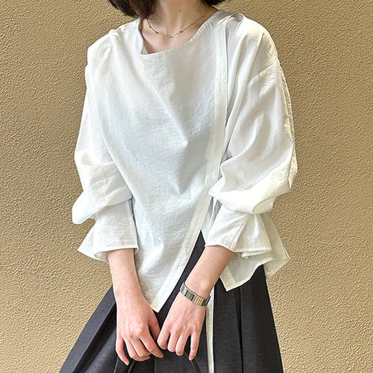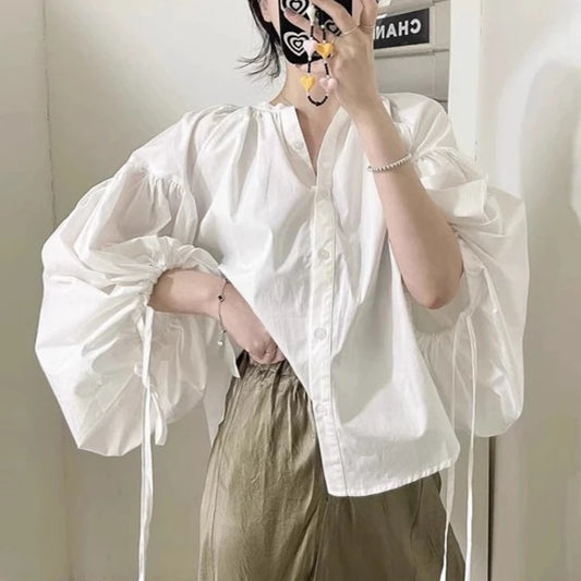 【トップス】春夏 韓国風 ゆったり ランタンスリーブ 合わせやすい シャツ