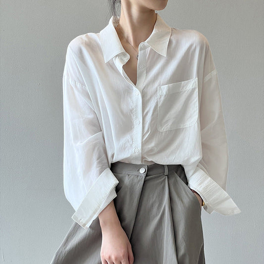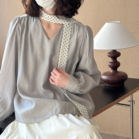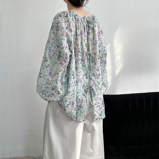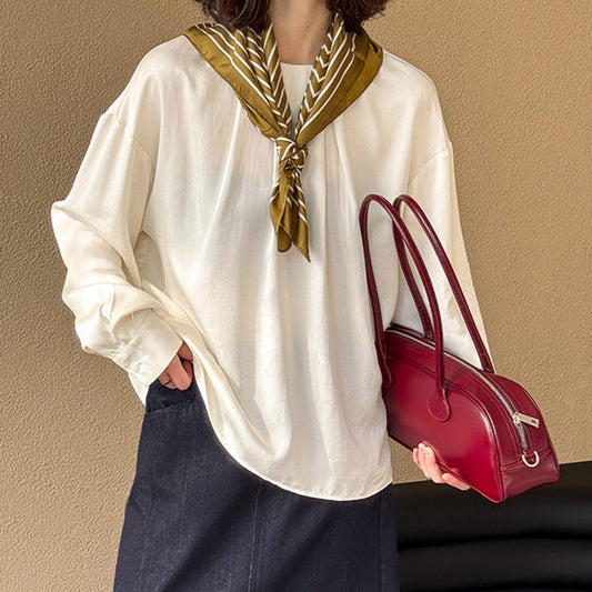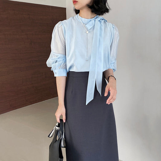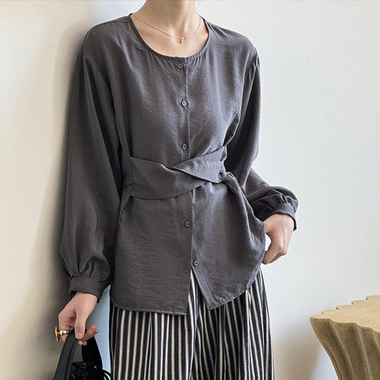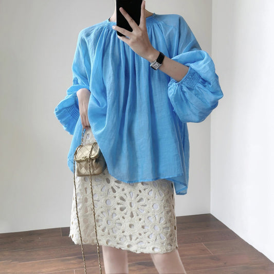 【トップス】春夏 ラウンドネック 薄手 ゆったり 上品 長袖 ブラウス