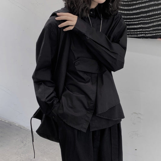 【トップス】春秋 ダークスタイル カップル ルーズ アシンメトリー シャツ【AHシリーズ】
