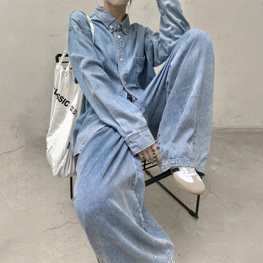 【トップス】春秋 快適 長袖 ゆったり デニム シャツ