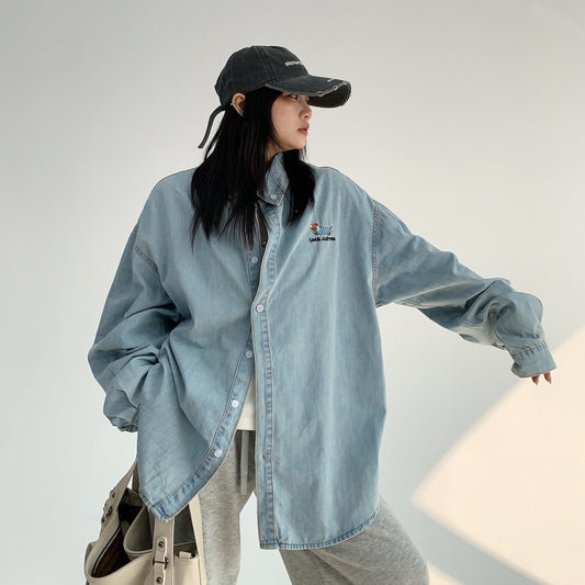 【トップス】春秋 シンプル カートゥーン刺繍 デニム 長袖 シャツ【FCシリーズ】