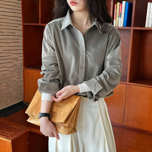 【トップス】春秋冬 日系 シンプル コーデュロイ生地 合わせやすい シャツ【SNシリーズ】