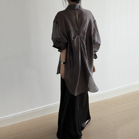 【トップス】春秋 立襟 ゆるリラックス 長袖 シャツ·ブラウス
