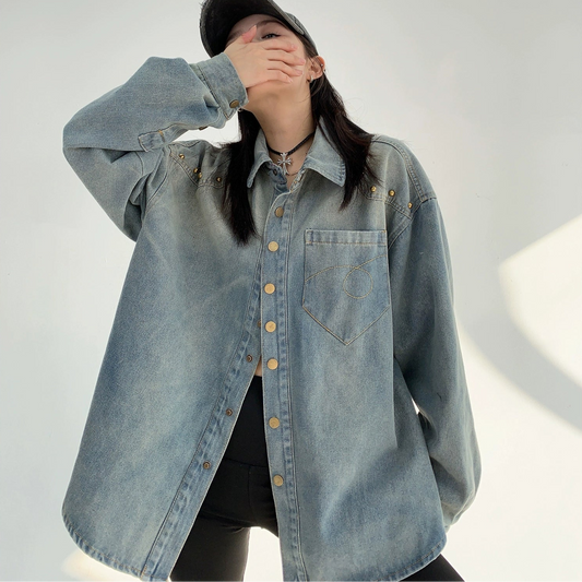【トップス】春秋 アメリカンスタイル リベット デニム シャツ【FCシリーズ】