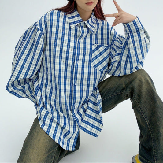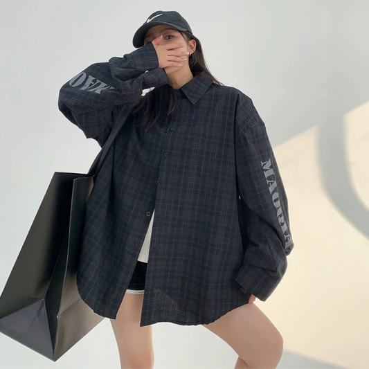 【トップス】春秋 ストリート oversize チェック柄 アルファベット シャツ【FCシリーズ】