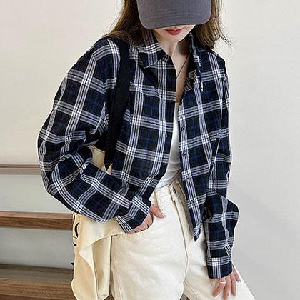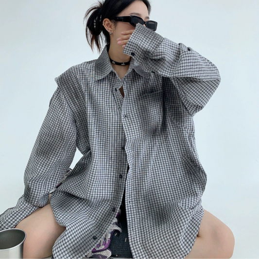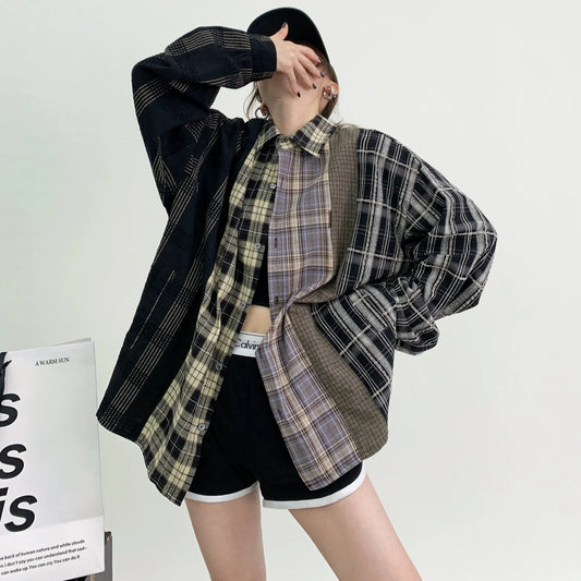 【トップス】【7~10日内発送】春秋 ゆったり レトロ チェック柄 シャツ 【FCシリーズ】