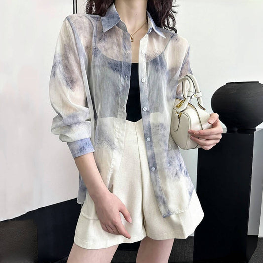 【トップス】春夏 レトロ プリント ゆったり 日焼け止め シャツ【JZシリーズ】