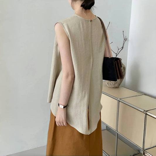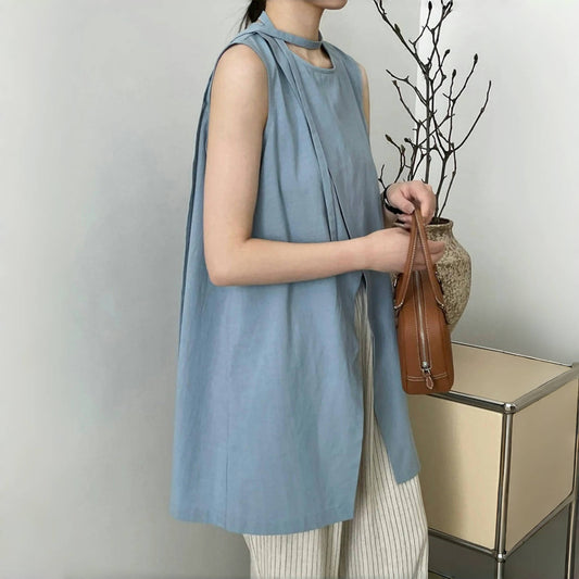 【25SS】 【トップス】スリット 夏 ロング ノースリーブ シャツ·ブラウス 【JZシリーズ】