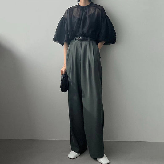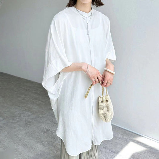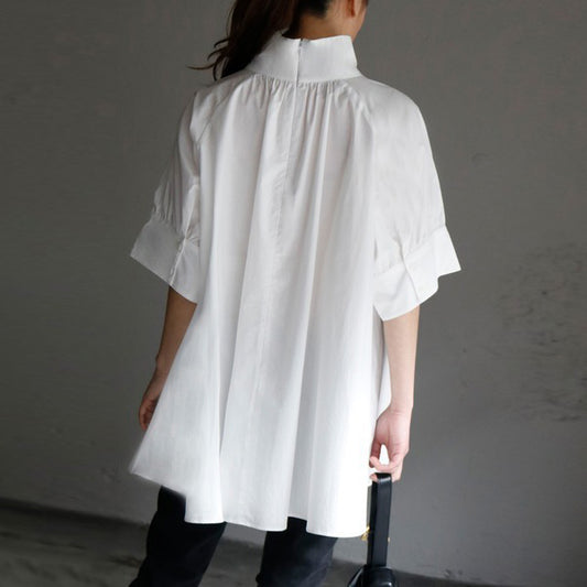 【25SS】【トップス】無地 ルーズ 夏 パフスリーブ スタンドカラー シャツ
