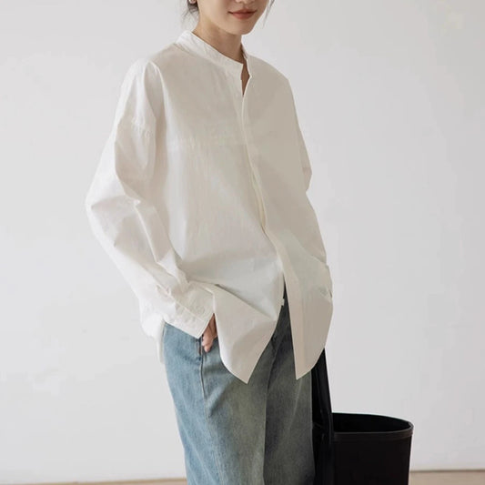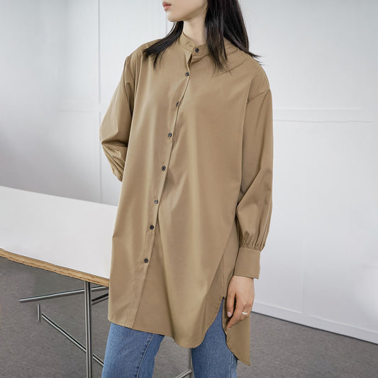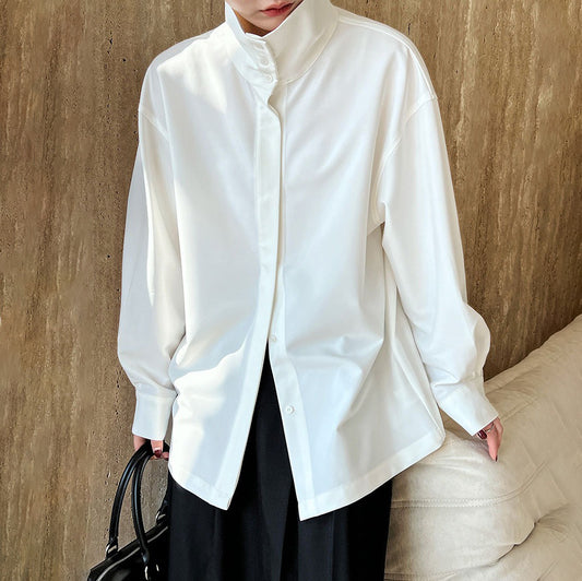 【トップス】春秋 スタンドカラー ドレープ シンプル 気質 長袖 シャツ 【SNシリーズ】