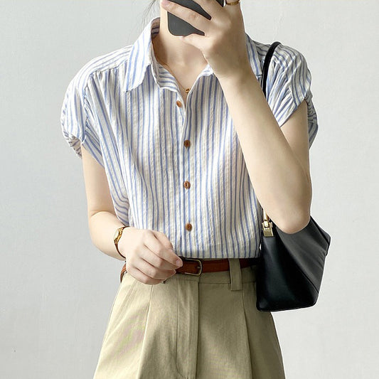 【トップス】夏 イチオシ お洒落 ストライプ 半袖 シャツ