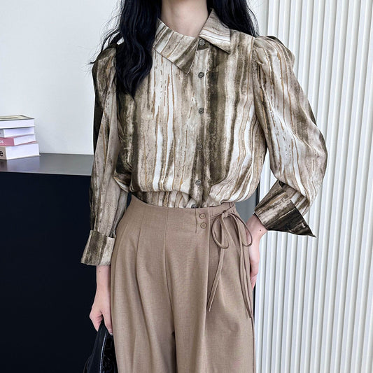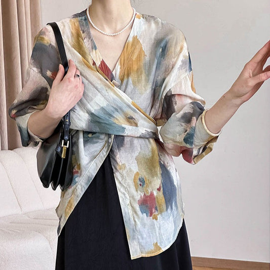 【トップス】春秋 レトロ ぼかし染め 長袖 イレギュラーデザイン シャツ【JZシリーズ】