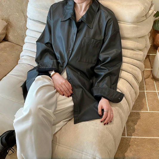【トップス】春秋 日系 PU レトロ 気質よい 海外トレンド シャツ【SNシリーズ】