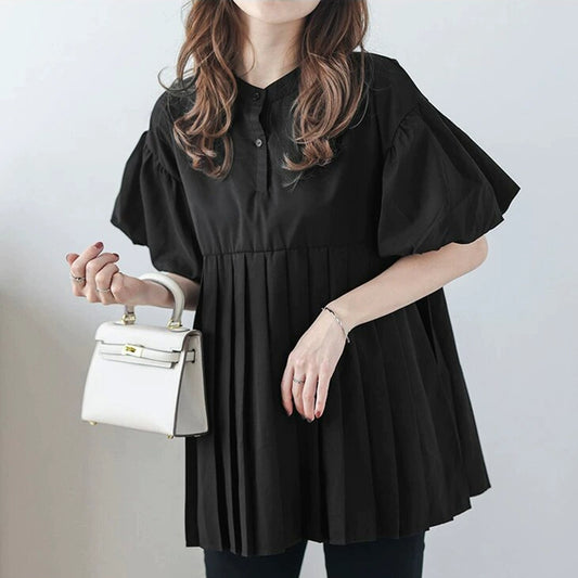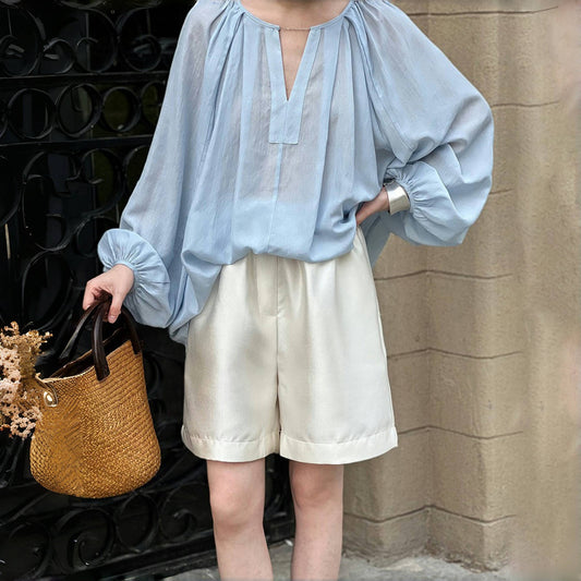 【トップス】高品質 ランタンスリーブ 夏 ゆったり シャツ