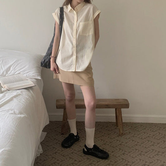 【トップス】ゆるリラックス 夏 シンプル ノースリーブ シャツ【JZシリーズ】