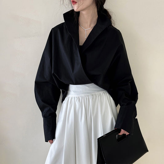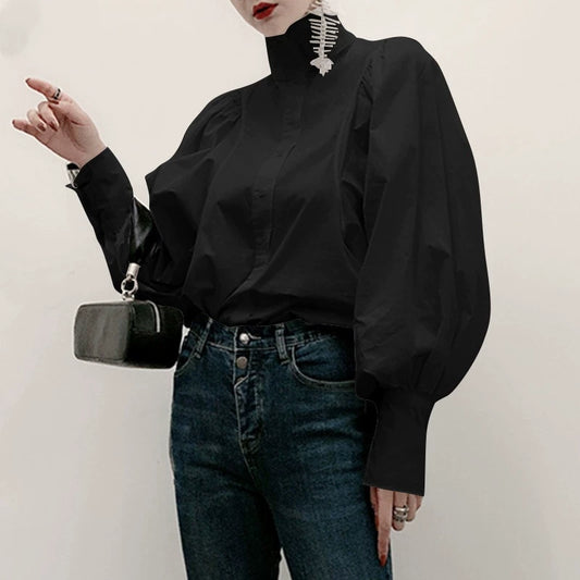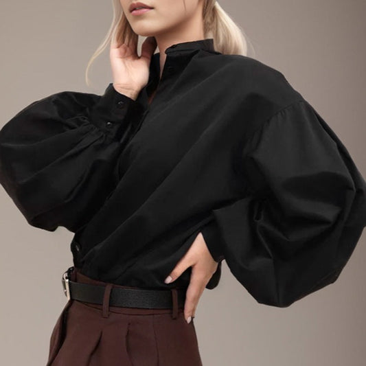 【トップス】春秋 シンプル セクシー ラペル ランタンスリーブ シャツ