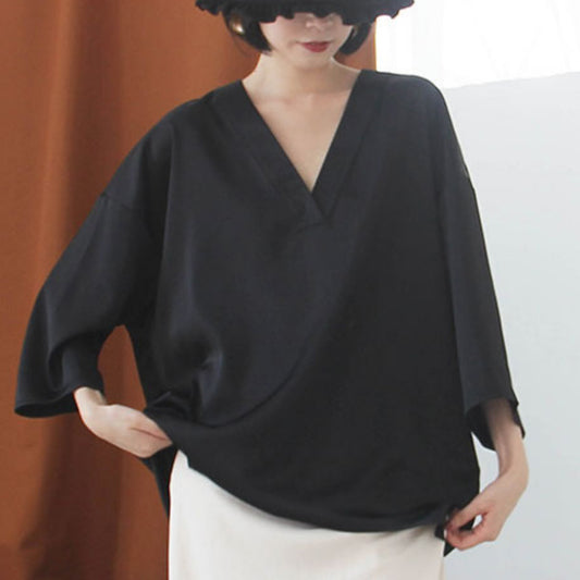 【トップス】Vネック サテン 夏 ルーズ 気質 シャツ