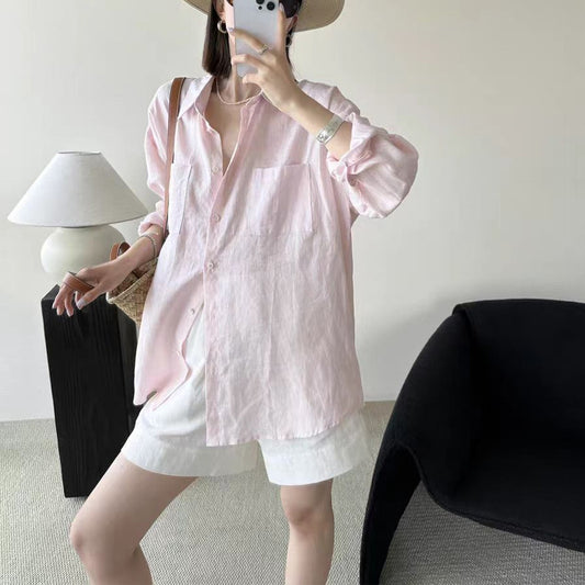 【トップス】春夏 今年も人気 ラミー ルーズ カジュアル 長袖 シャツ