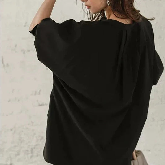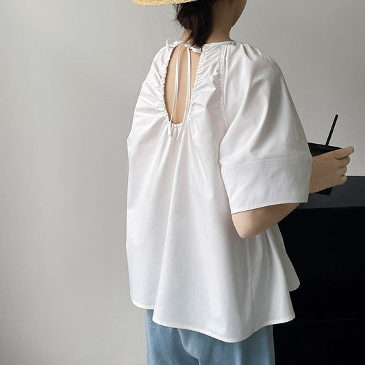 【トップス】夏 レトロ ゆったり お腹カバー プルオーバー 無地 シンプル シャツ