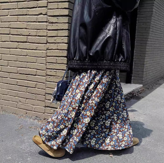 【60%OFF⭐️早い者勝ち】【ボトムス】レトロ 秋冬新作 ゆったり体型カバー 大きめフレア ロング フラワー 裏起毛スカート【SHシリーズ】