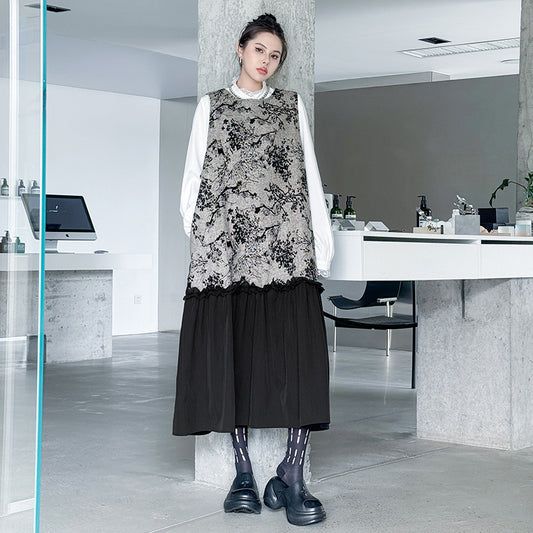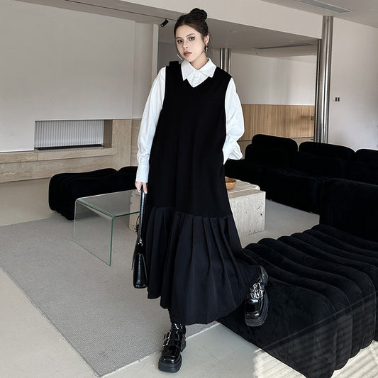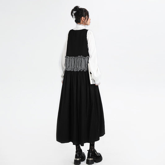 【ワンピース】レトロ 重ね着 春 秋 冬 大振裾 タンクトップ ワンピース 【SHシリーズ】