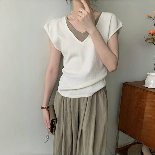 【トップス】ニット フェイクレイヤード 夏 半袖 Tシャツ 【JZシリーズ】