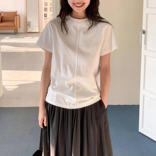 【トップス】夏 高見えデザイン ラウンドネック Tシャツ