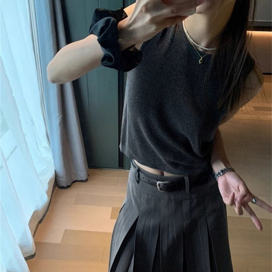【トップス】韓国風 シンプル Vネック ノースリーブ ベビードールブラウス【JZシリーズ】