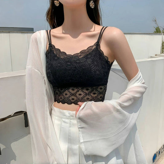 【トップス】 夏 レース 無地 透かし彫り キャミソール