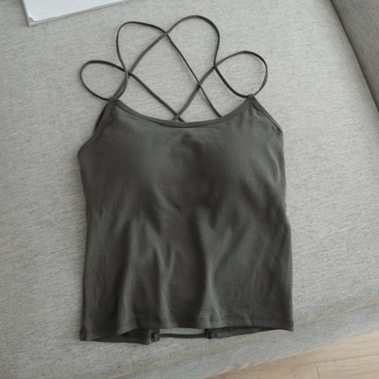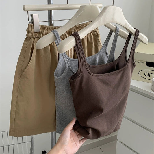 【トップス】パッド付き 合わせやすい タンクトップ 【SNシリーズ】