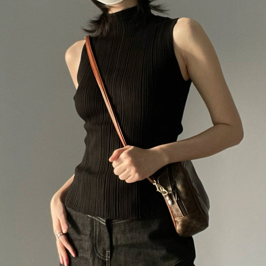 【トップス】ミドルハイネック夏 ニット タンクトップ
