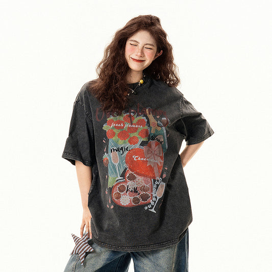 【トップス】夏 ルース レトロ カップル 半袖 プリント Tシャツ【FCシリーズ】