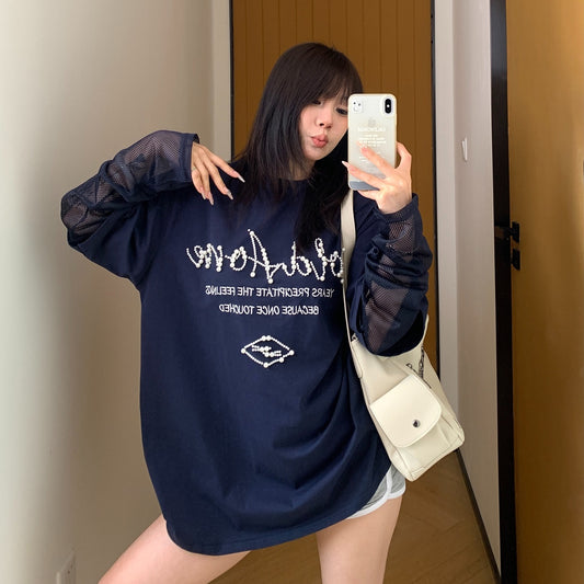 【トップス】夏 Chicなレトロ風レタープリント 薄手 UVカット 長袖Tシャツ【FCシリーズ】