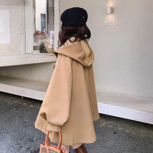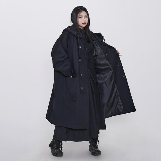 【アウター】秋冬 暗黒系デザイン ミディ丈 ゆったり大きめサイズ フード付きトレンチコート/綿入れコート レディース【AHシリーズ】
