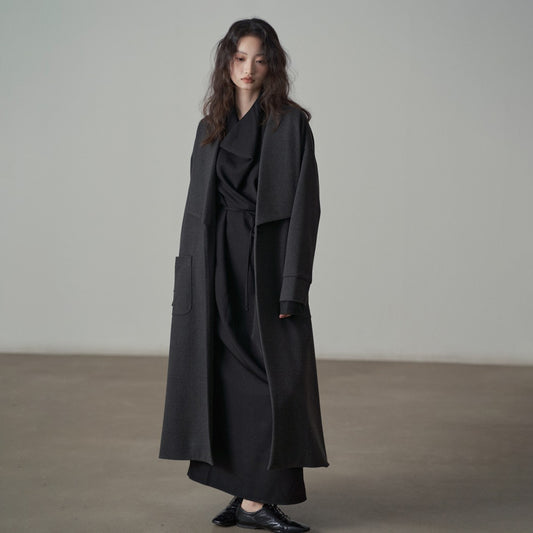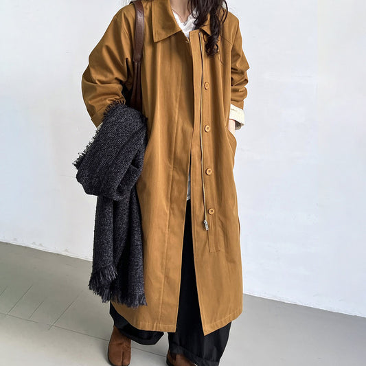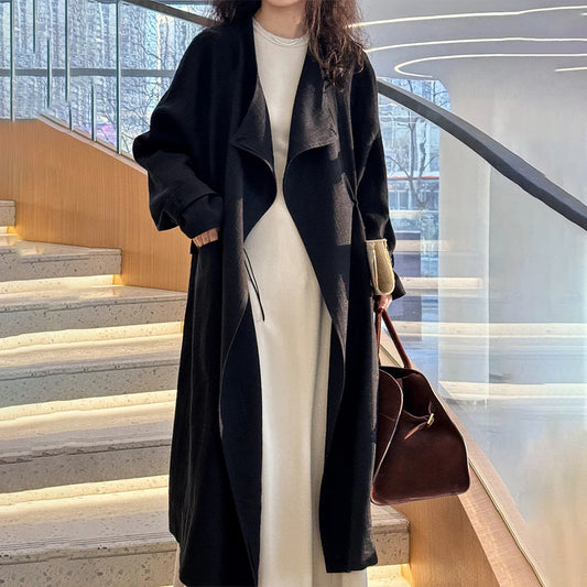 【アウター】新作 大きめラペル ゆったり ロング丈 長袖 コート トレンチコート レディース【JZシリーズ】