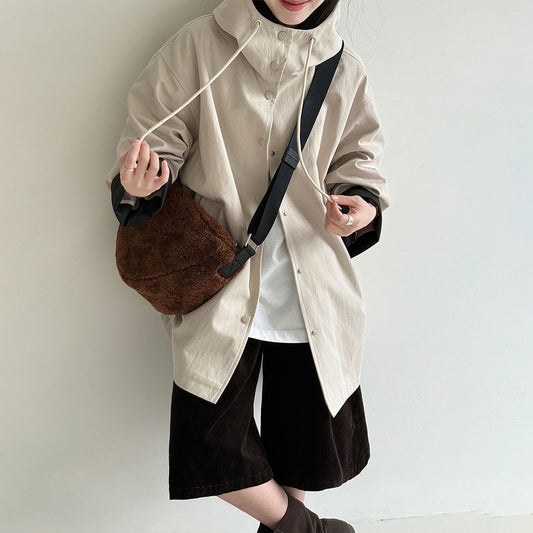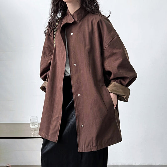 【アウター】日系 シンプル 春秋 スタンドネック トレンチコート【JZシリーズ】