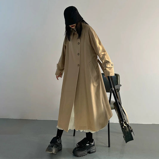 【アウター】春 秋 オーバーシルエット ミディアムロング丈 シングルボタン トレンチコート 【JZシリーズ】