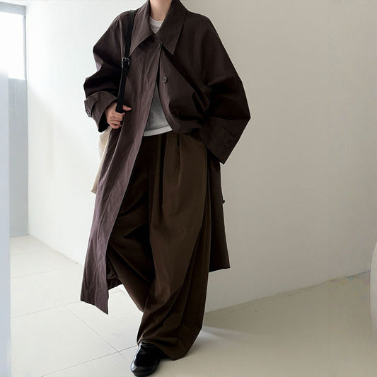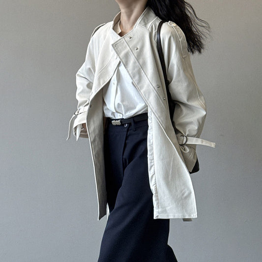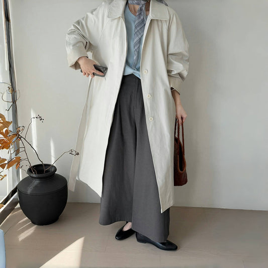 【アウター】日系 シンプル 綿麻生地 春秋 高級感 無地 トレンチコート【SNシリーズ】